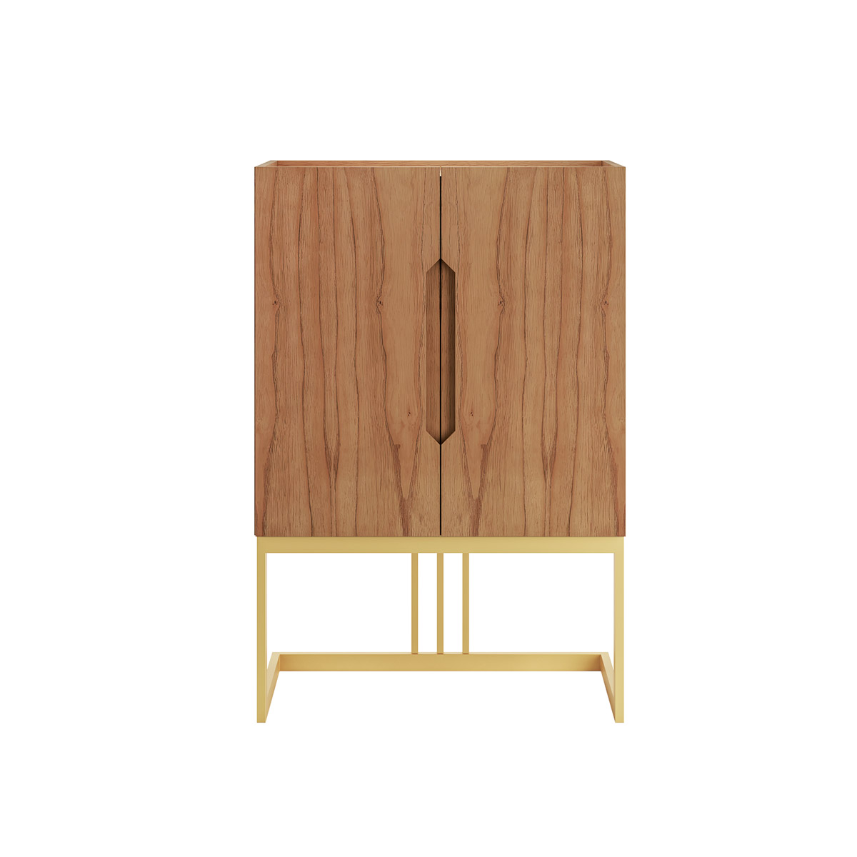 O móvel é fabricado em lâmina natural de madeira com acabamento em verniz semi fosco. As portas recebem aplicação artesanal da queridinha palha indiana. As dobradiças de amortecimento garantem um fechamento muito suave. As prateleiras internas são removíveis, o que permite que seja adequada à sua necessidade. A base é de metal e recebe acabamento em laca.