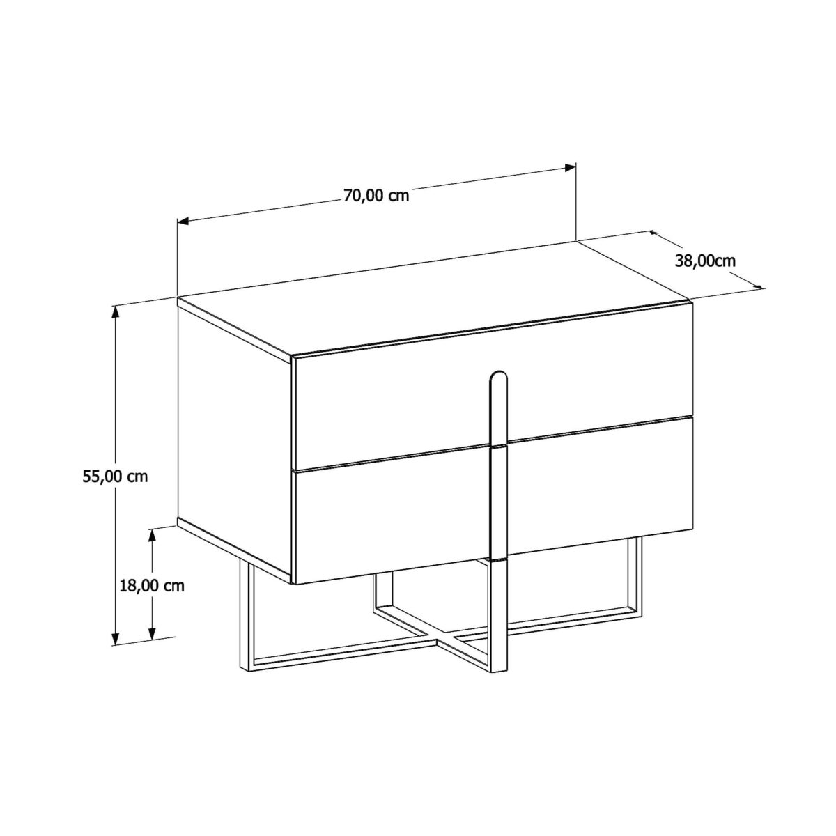 Com base e puxadores contínuos, a Mesa de Cabeceira Aurora foi pensada para trazer fluidez e leveza ao ambiente com um design minimalista e moderno. O móvel é fabricado em MDF 15 mm com acabamento em laca semi fosca. Os pés e puxadores são produzidos em metal e também recebem acabamento em laca. Possui duas gavetas com corrediças metálicas telescópicas.