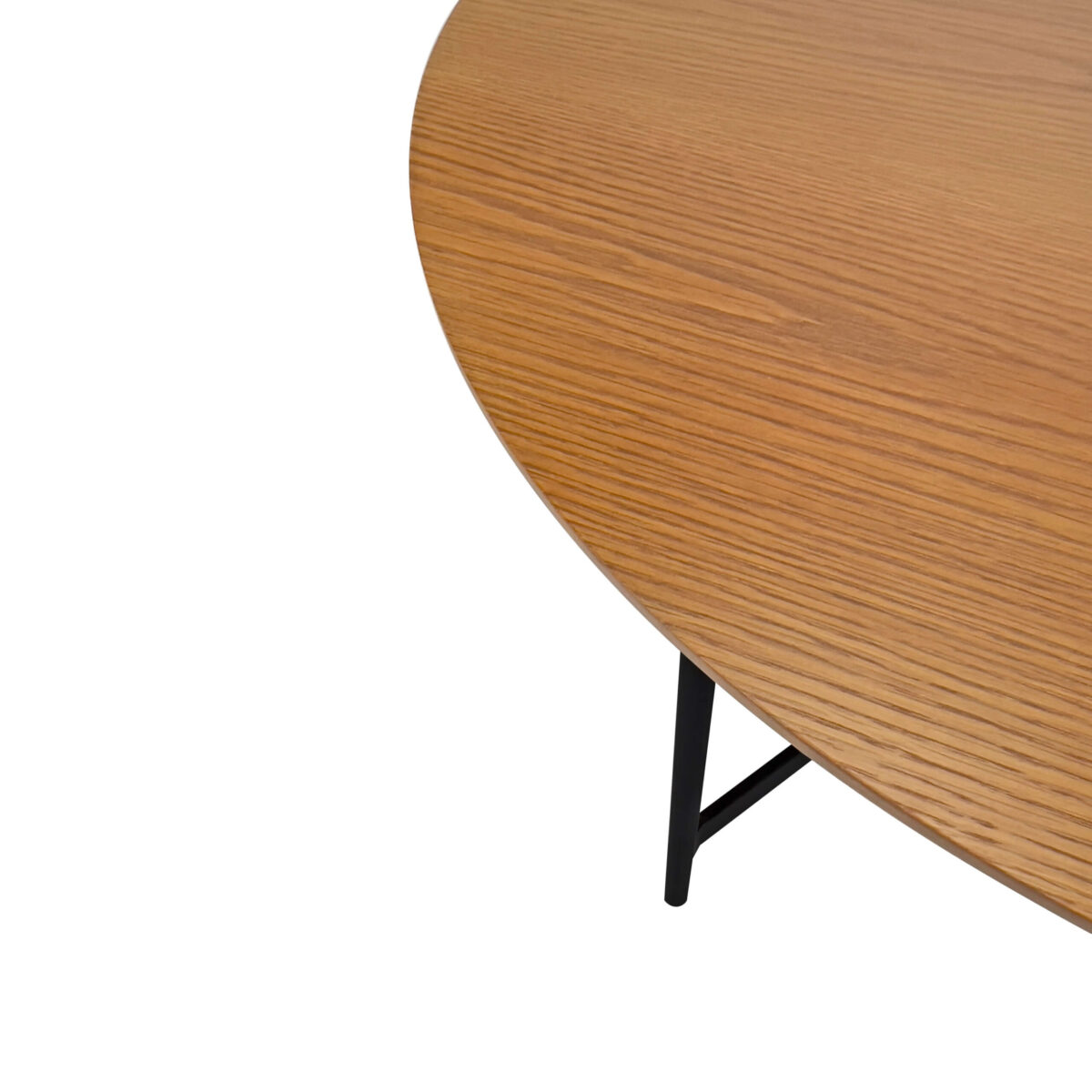 Fabricada em lâmina de cinamomo com acabamento em verniz fosco. Pés em metal com acabamento em laca.